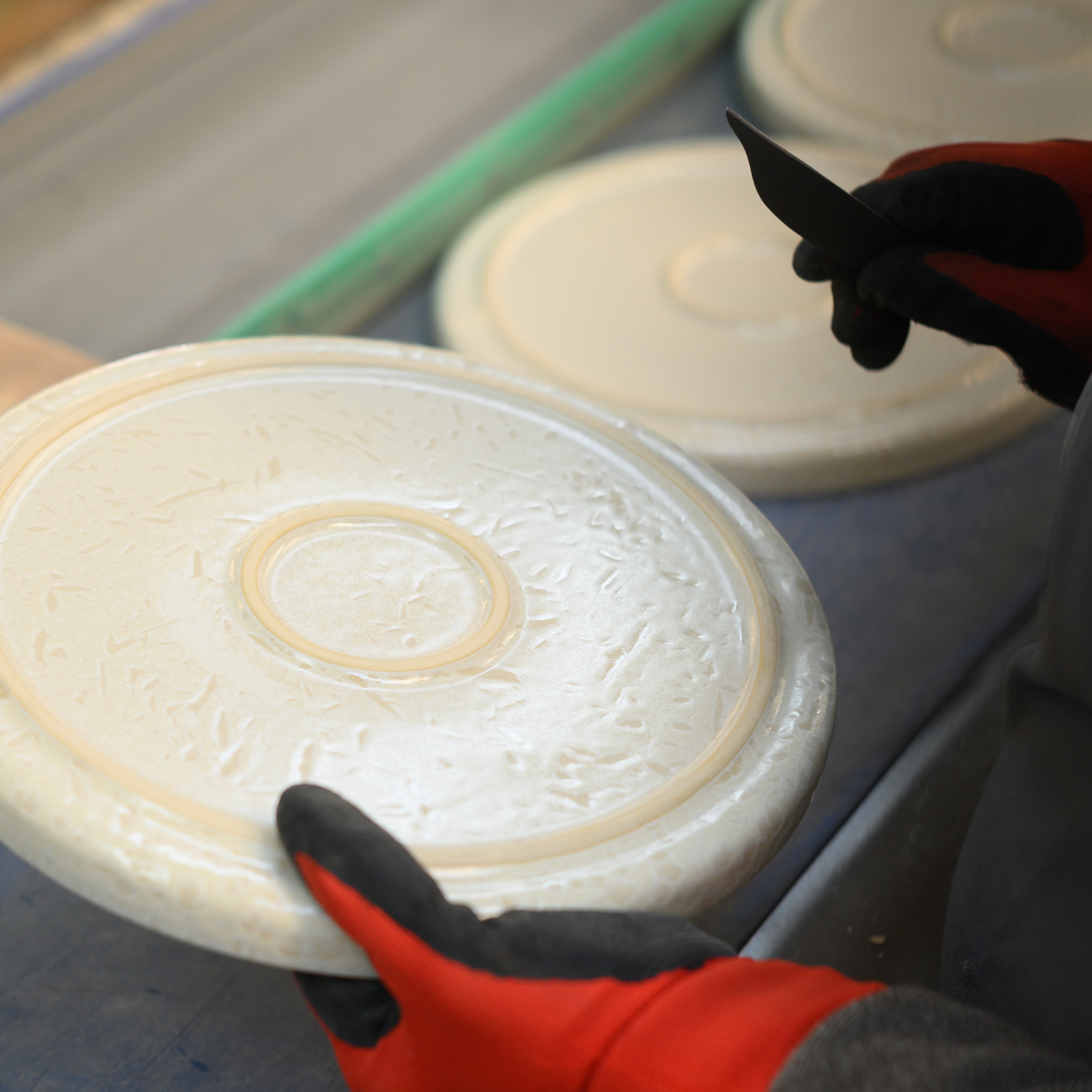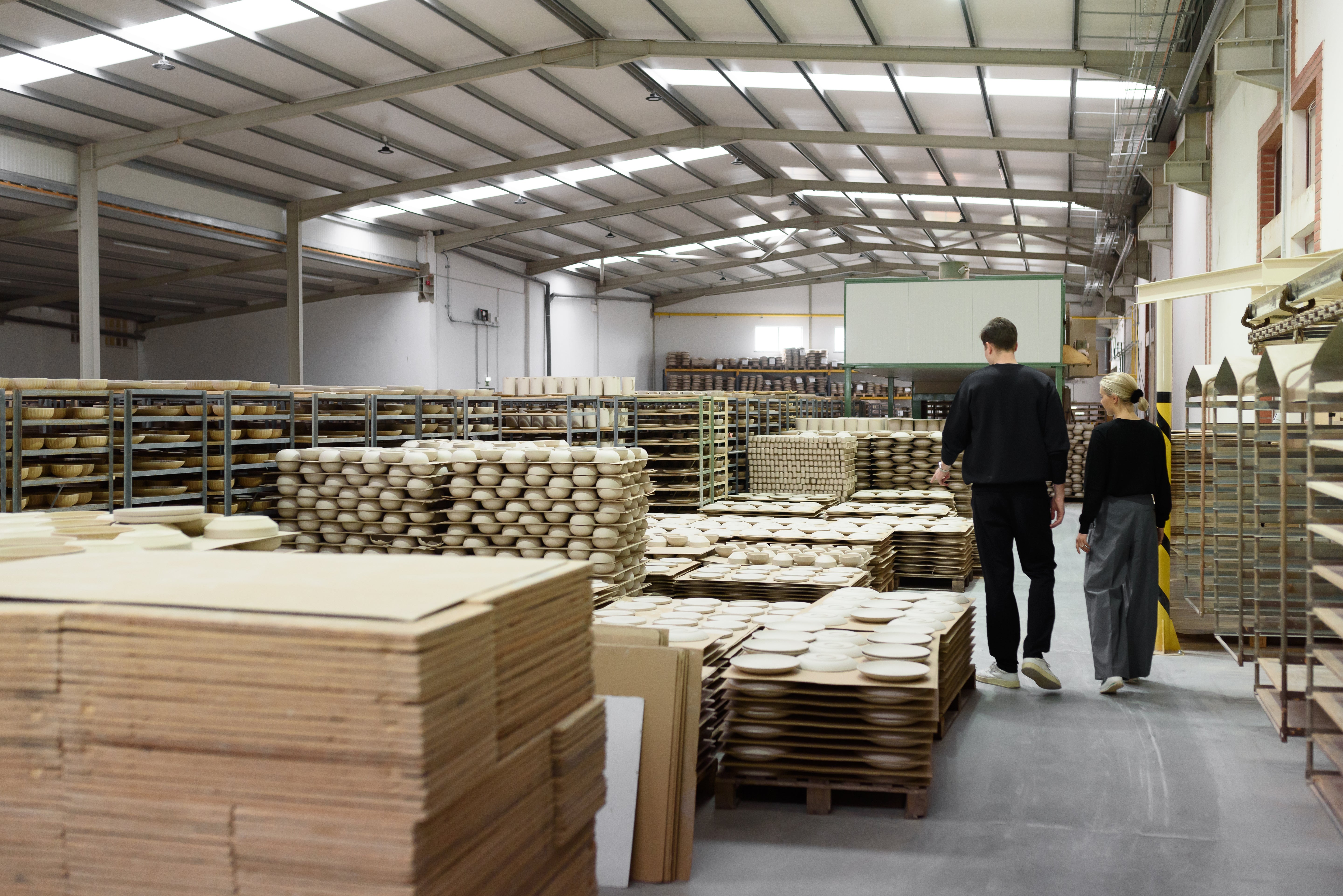 In the next step, the pieces are fired at around 1,200 °C for around eight hours. During this first firing, the material compacts, giving the ceramic its high stability and robustness. The shape is permanently strengthened and is then ideally suited for everyday use.