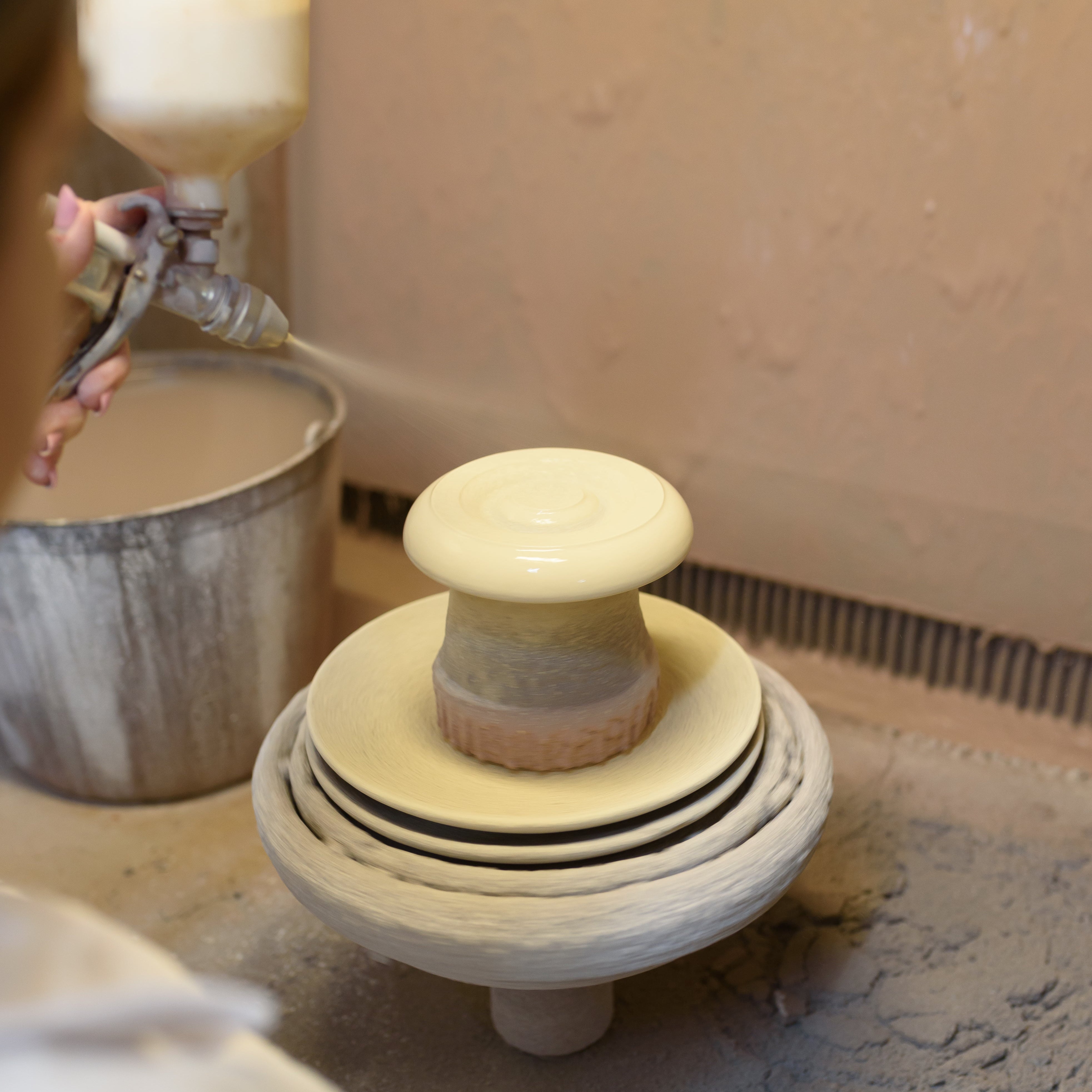 After a controlled cooling phase, the glaze is applied by hand. With great sensitivity, individual color gradients and subtle nuances are created, making each piece visually unique. No two objects are exactly alike - each one bears its own signature.
